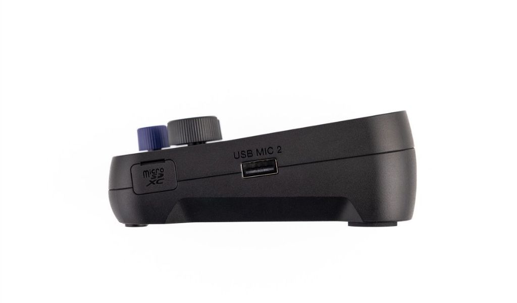 Herzstück des PodTrak P2 sind die zwei USB-A-Mikrofoneingänge, über die sich USB-Mikrofone direkt anschließen lassen. Das ist ungewöhnlich, aber tatsächlich einer der größten Vorteile des Geräts. Hinzu kommen zwei Kopfhörerausgänge (3,5 mm), ein gemeinsamer Lautstärkeregler, dedizierte Gain-Regler pro Mikrofon, Mute-Tasten sowie gut ablesbare LED-Meter. Die Bedienung gelingt intuitiv: Aufnahme, Stop, Marker und Transportfunktionen liegen auf physischen Tasten, die Gain-Regler sind groß genug, um auch bei hektischem Außeneinsatz sicher bedient zu werden, und die Pegelanzeige reagiert schnell und deutlich. Für mobile Interviews, spontane Podcast-Sessions oder journalistische Einsätze ist genau das entscheidend: keine Menüs, keine Komplexität – einfach aufnehmen.